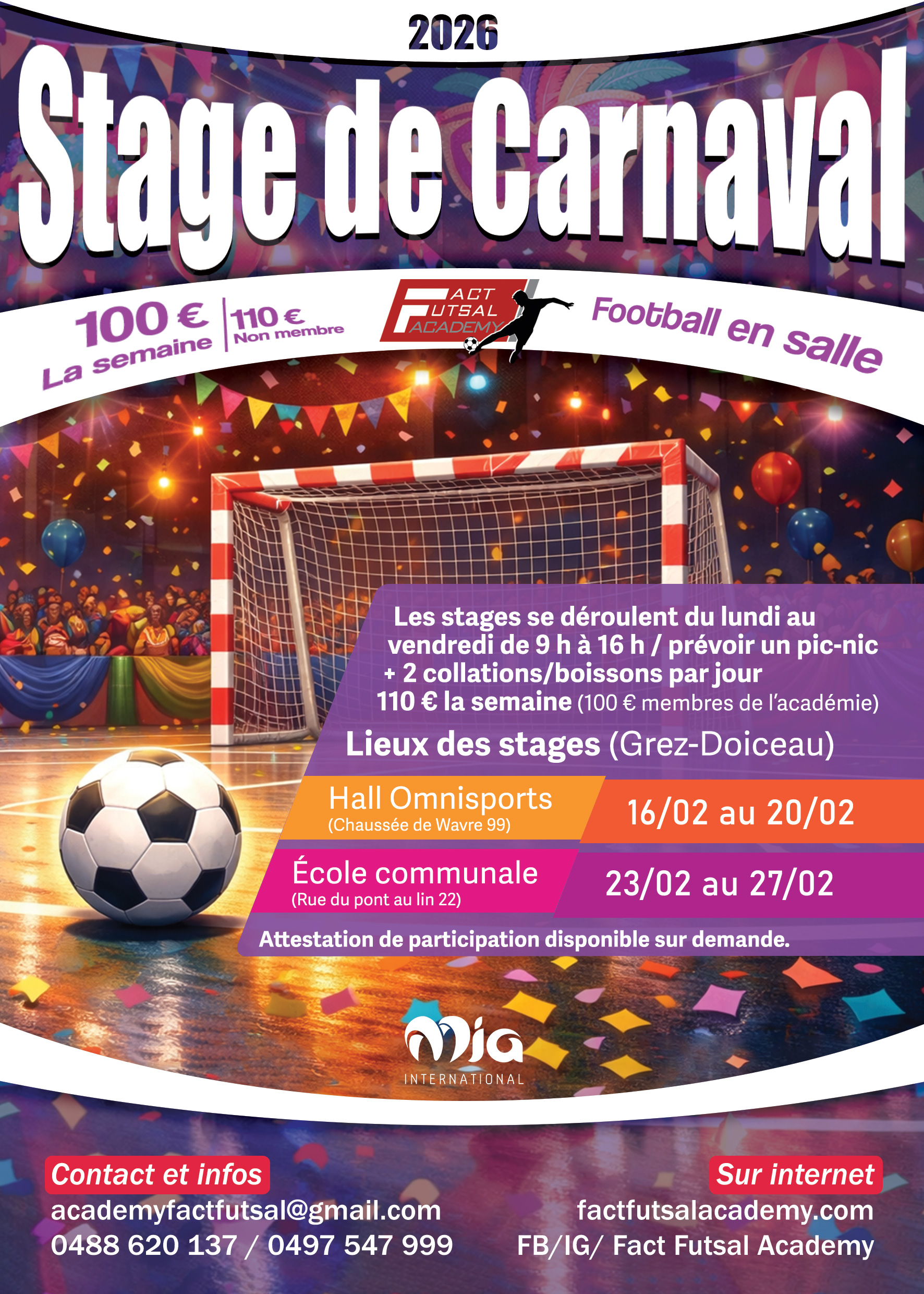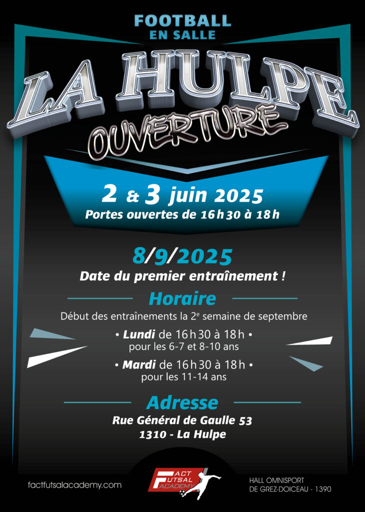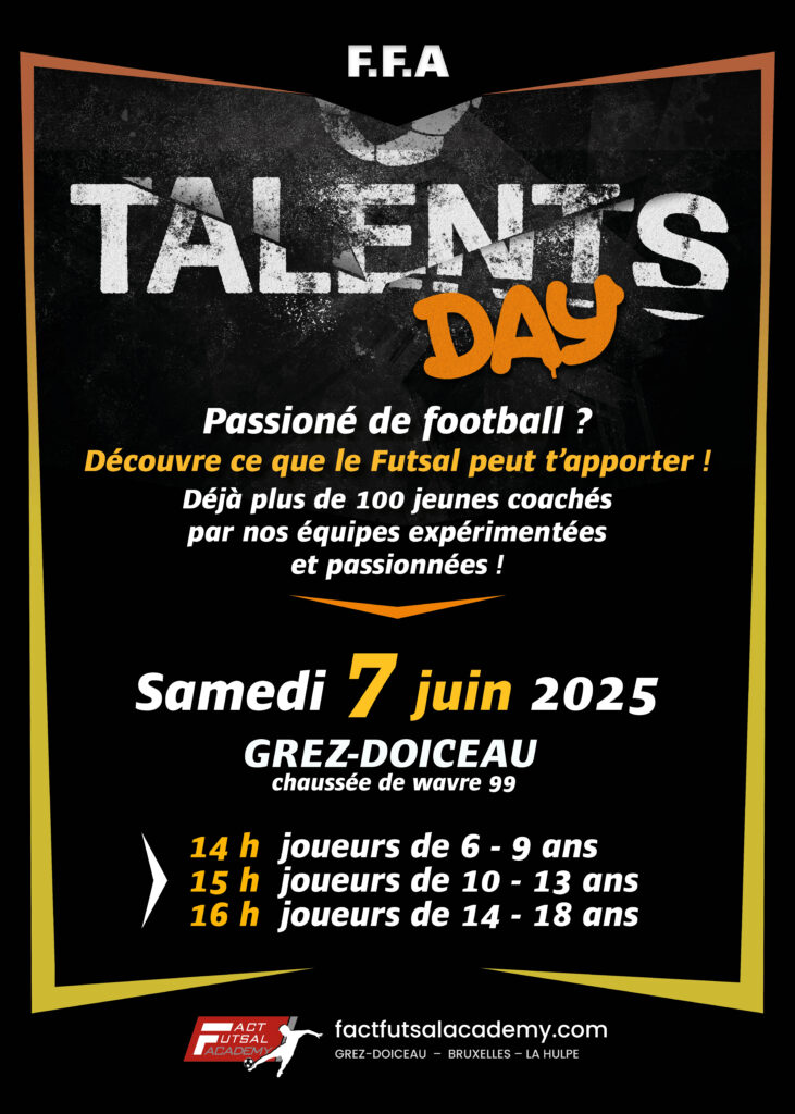 Fact Futsal Academy vous propose de rejoindre son école de football en salle dans le superbe hall omnisports de Grez-Doiceau.